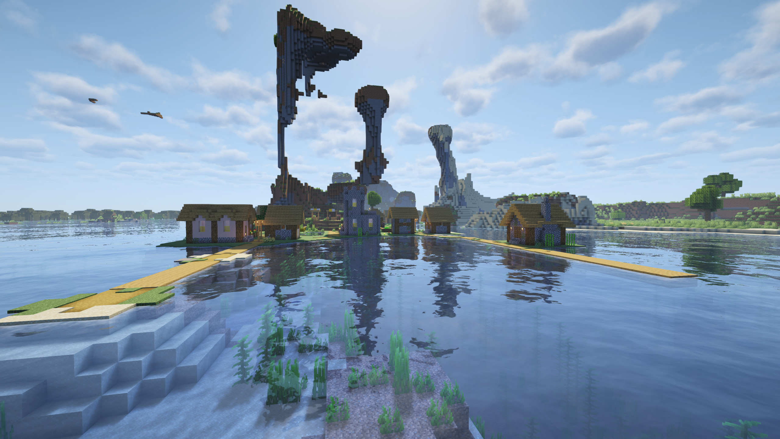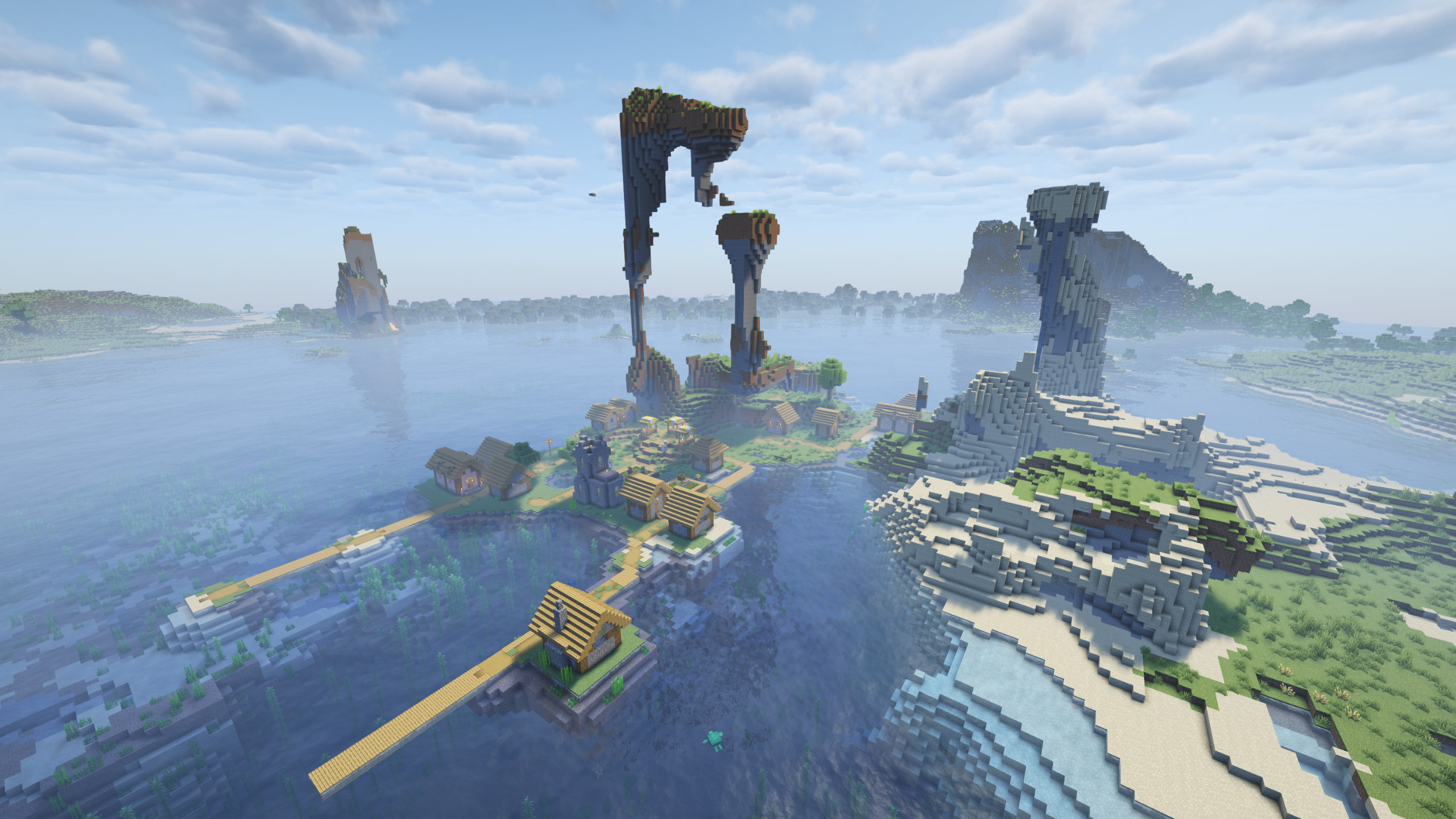 Villages are common in Minecraft, but water villages are rare—and villages positioned near extreme mountain terrain are even rarer.