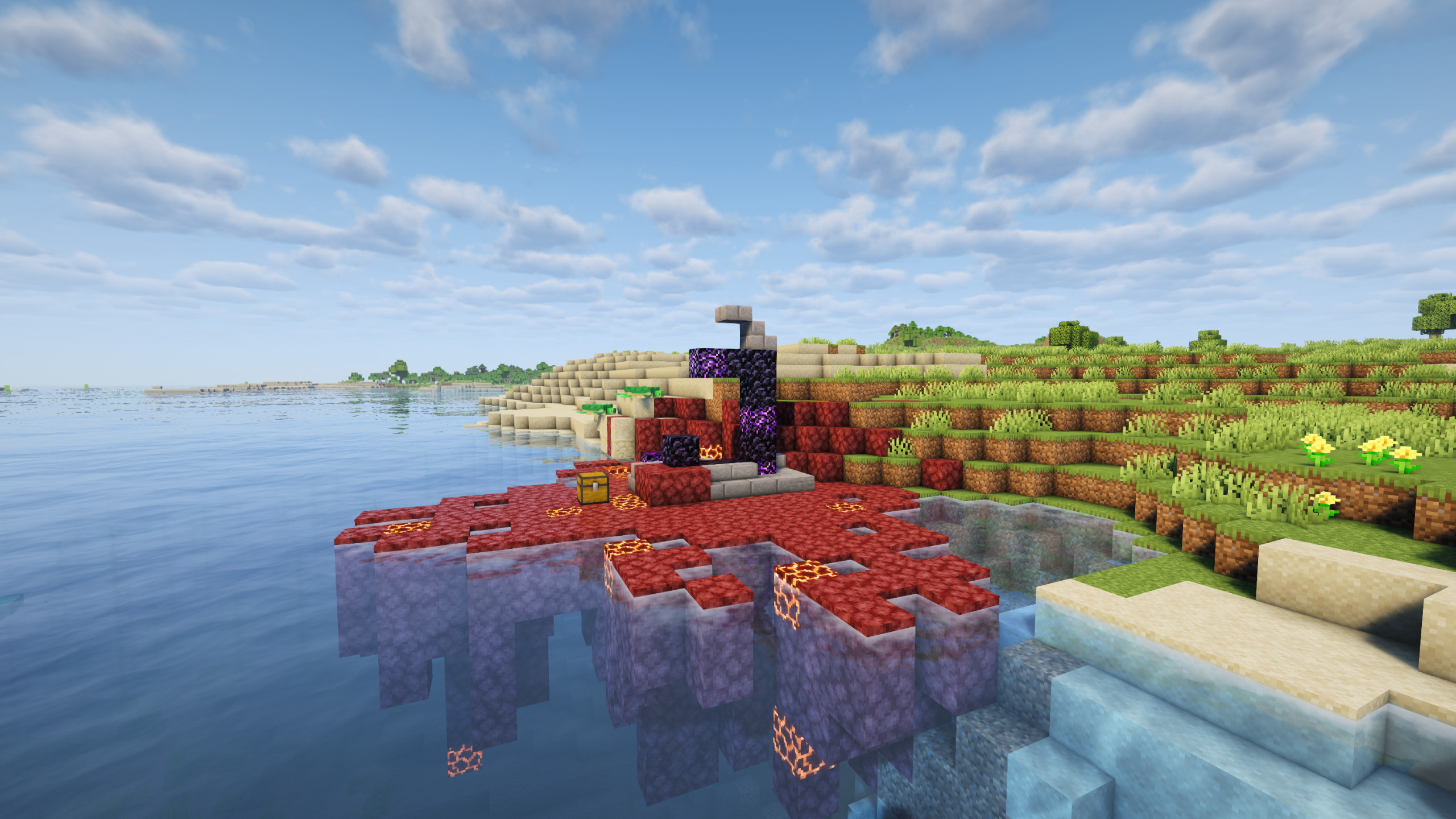 The nearby Ruined Nether Portal allows players to access the Nether extremely early.