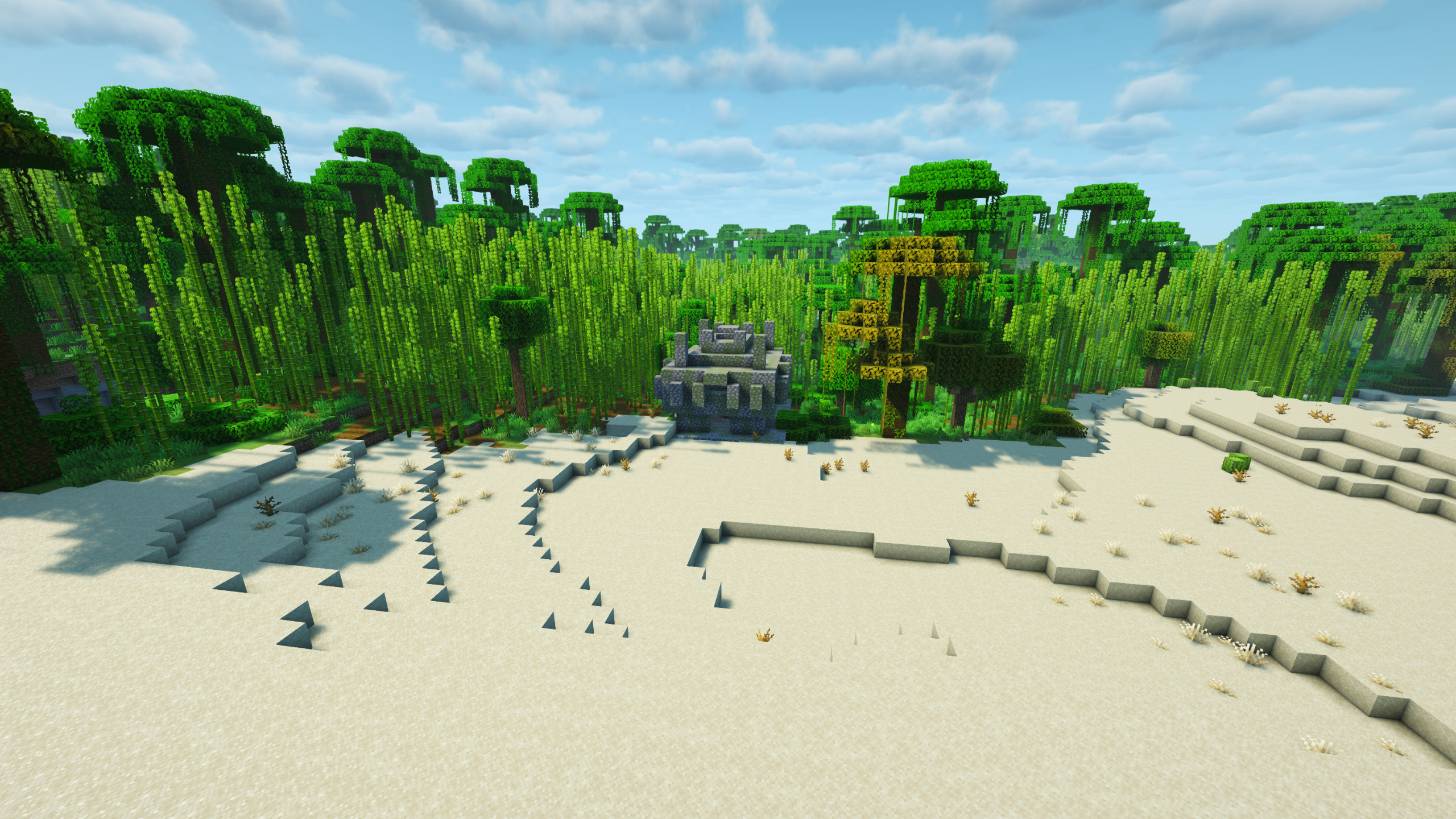 Crazy Minecraft Seeds 2026 – Jungle Meets the Dunes brings together: