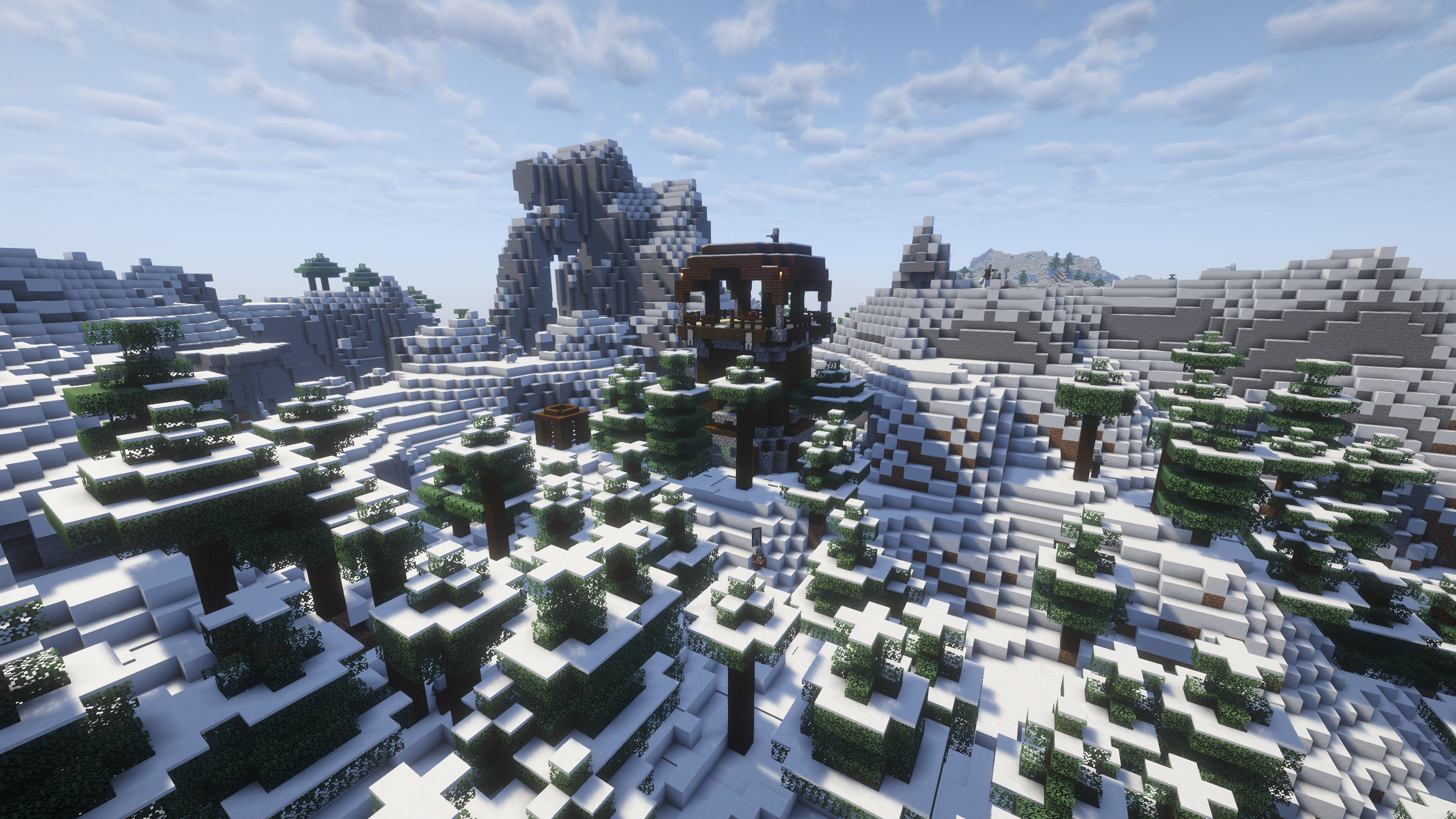 Upon spawning in the Snowgrave Watch seed, players are immediately confronted with the beauty and challenge of this world. Snow-covered peaks rise dramatically into the sky, icy plains stretch across the horizon, and dense spruce forests offer both resources and shelter.